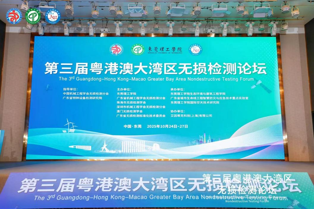 第三届粤港澳大湾区无损检测论坛于2025年10月24日至27日在东莞成功举办。本届论坛以“智能无损·融合创新·赋能产业高质量发展”为主题,由东莞理工学院联合多家行业学会和科研机构共同主办。论坛聚焦低空经济、智能制造等重点领域,系统展示无损检测新技术、新方法及装备研究成果,吸引了全国学术界与产业界的广泛参与。