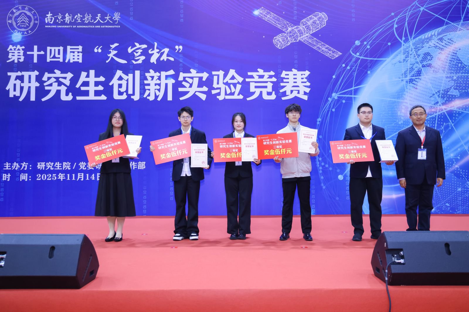 2025年11月14日,于瑶等同学凭借项目《即时可视化婴幼儿肺功能成像设备的研发与临床应用》,在第十四届“天宫杯”研究生创新实验竞赛中获得三等奖。