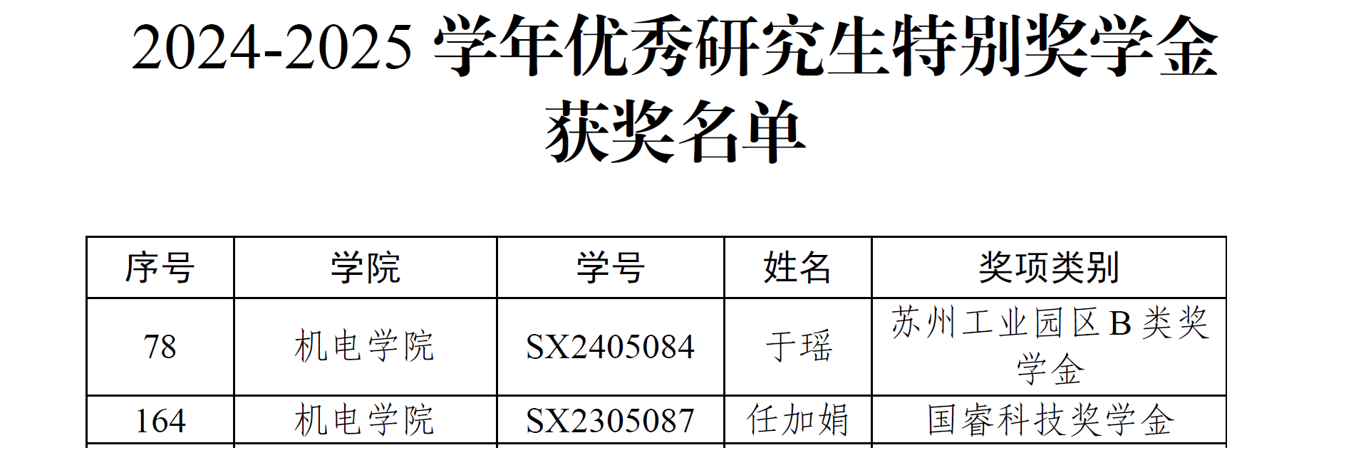 研究室任加娟、于瑶凭借其出色的科研能力分别获得“国睿科技奖学金”、“苏州工业园B类奖学金”